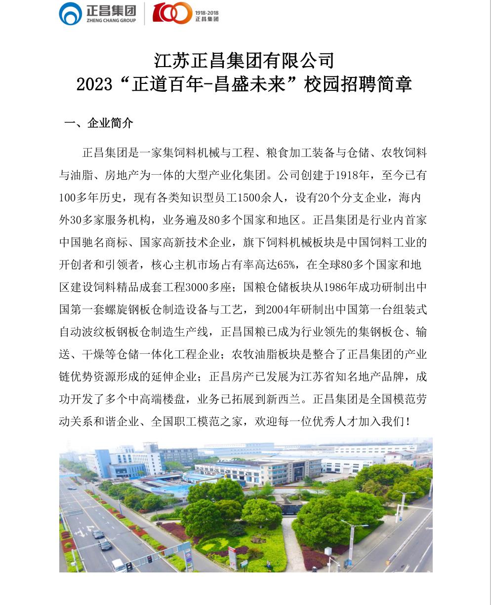 江苏正昌集团有限公司 2023“正道百年-昌盛未来”校园招聘简章