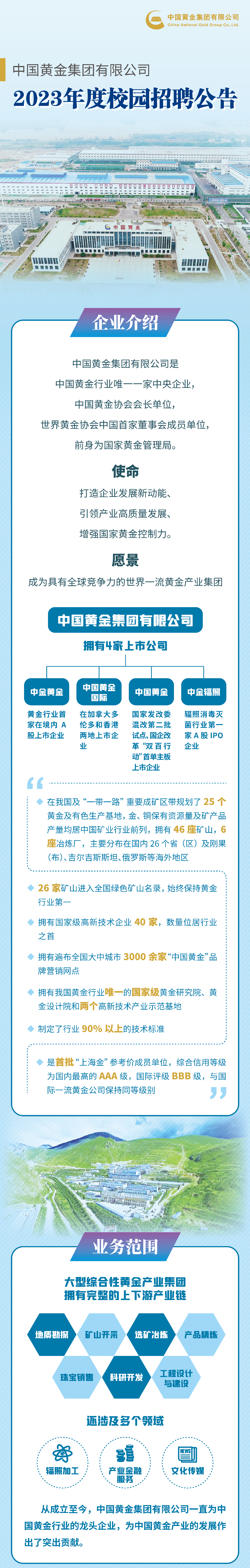 央企校招 | 中国黄金集团2023年招聘公告!六险二金+多项补贴!