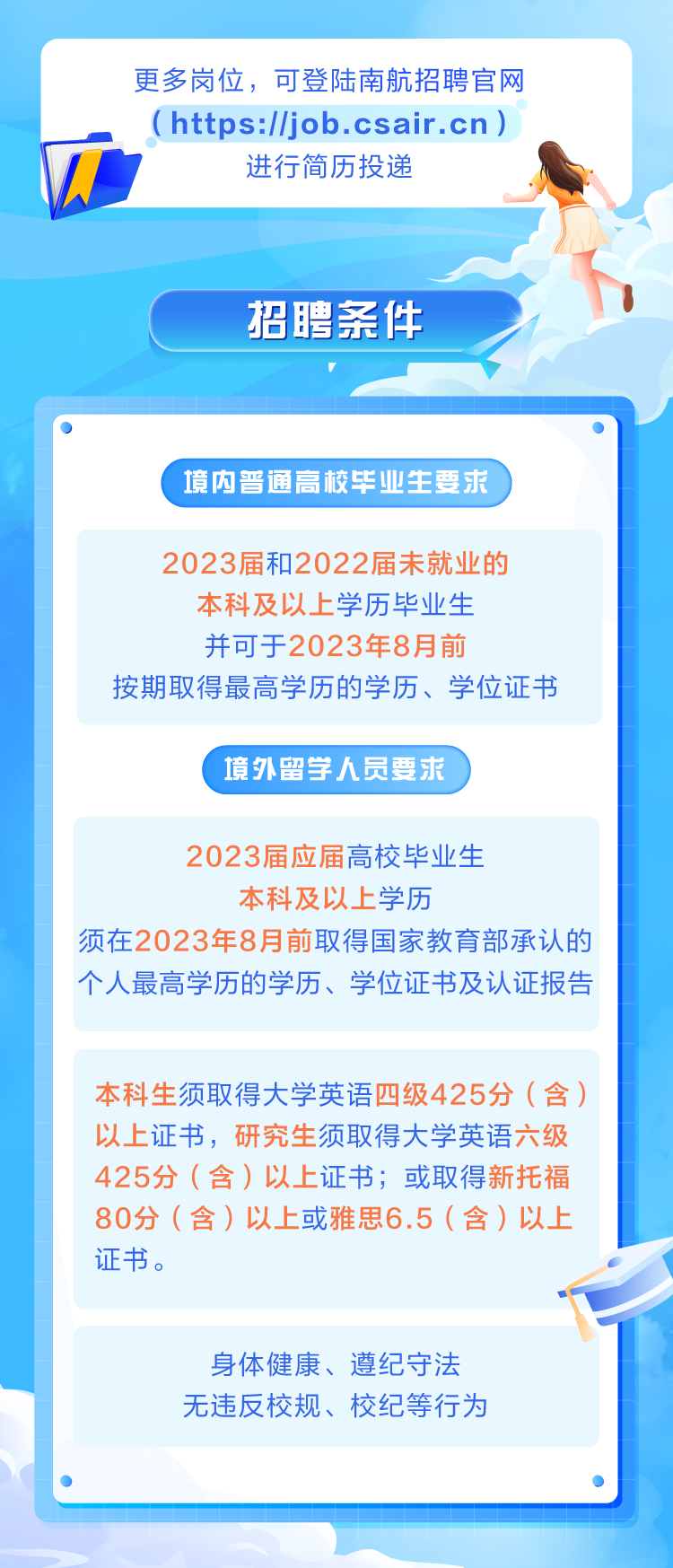 重磅!中国南方航空2023届秋季校园招聘公告发布!岗位遍及全国22个市!正在报名!