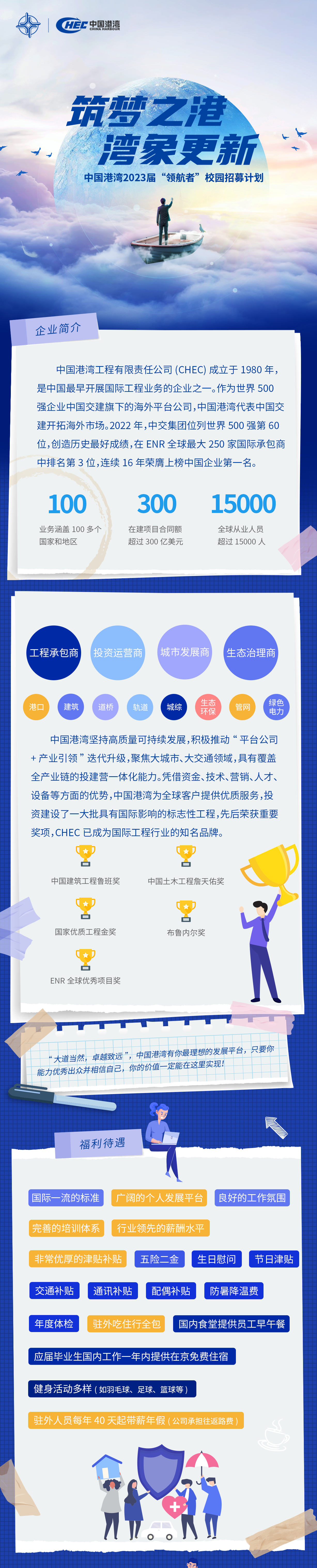 选择港湾,拉近你与世界的距离丨中国港湾2023届“领航者”全球招募计划即日启动!