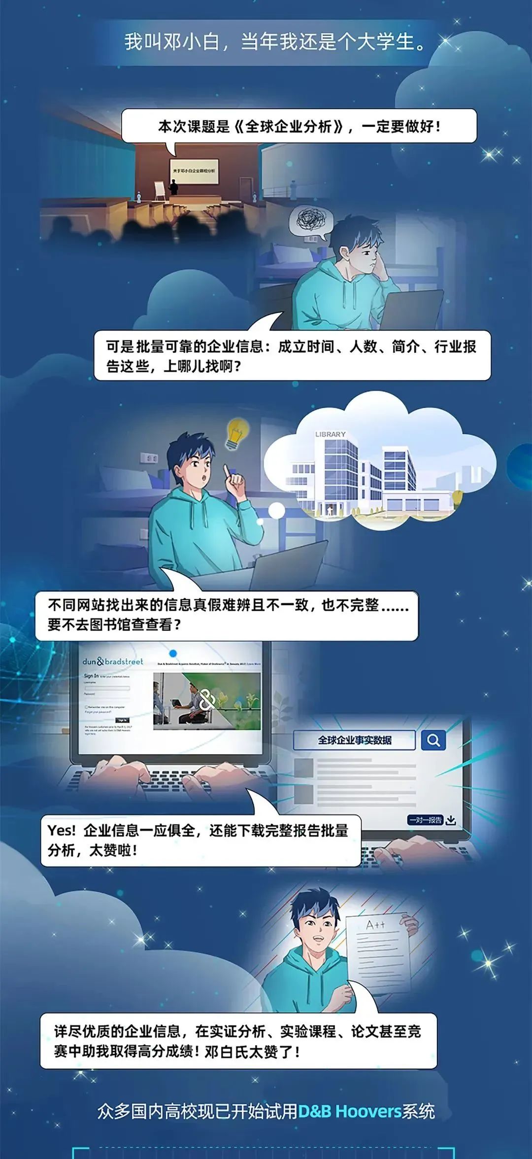 邓白氏于1981年进入中国,我们将数据、技术和专业能力相结合,赋能客户业务决策,在商业信用与供应链、合规与反欺诈、销售与营销、普惠金融等多个应用场景中,帮助客户提高营收、降低成本、管控风险和实现数字化转型。同时,我们通过邓白氏注册®服务帮助中国企业进行商业信息的验证、展示及全球同步,增强贸易互信,加速交易达成。