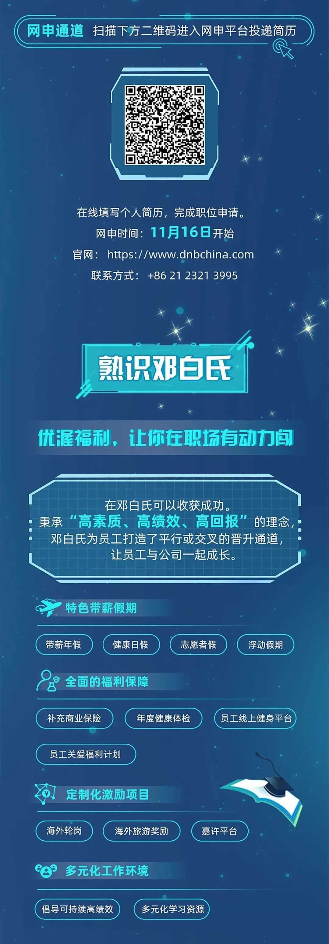 邓白氏(Dun & Bradstreet)是全球数据和分析驱动的决策赋能机构。自1841年以来,我们致力于构建全球信任网络,协助客户将未知转化为信心、将风险转化为机遇、将潜力转化为增长。