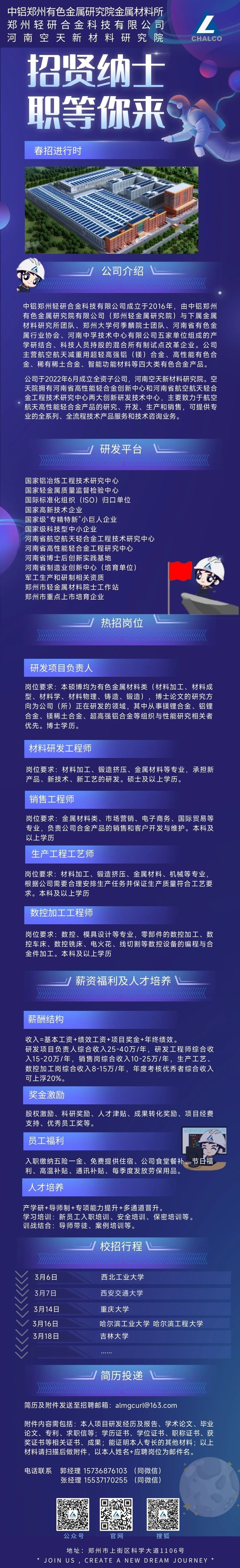 中铝郑州轻研合金科技有限公司2023年春季校园招聘
