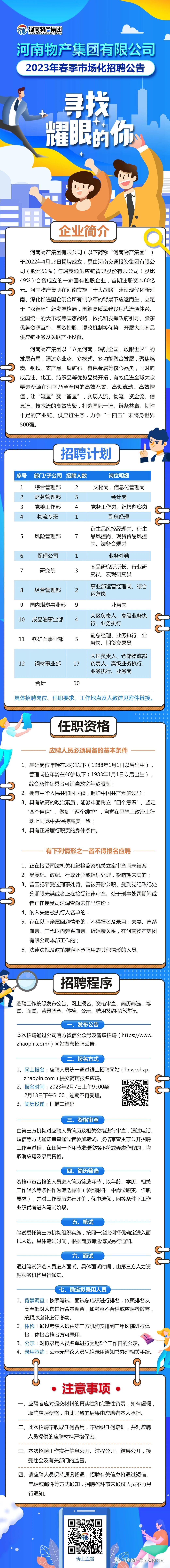 国企!60人!河南物产集团有限公司春季市场化招聘公告【2.7-2.13】