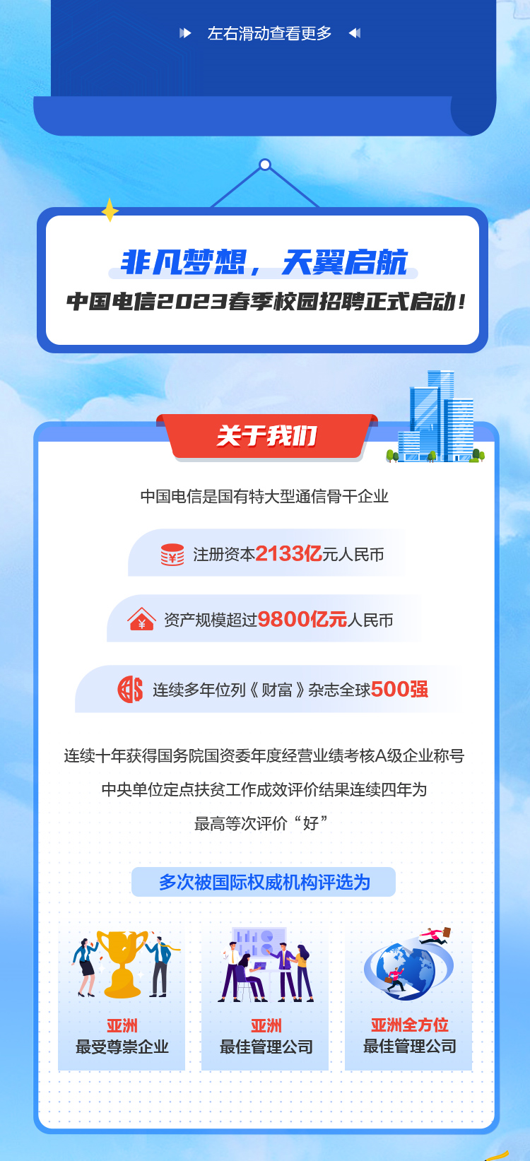非凡梦想 天翼启航!中国电信2023春季校招正式启动!