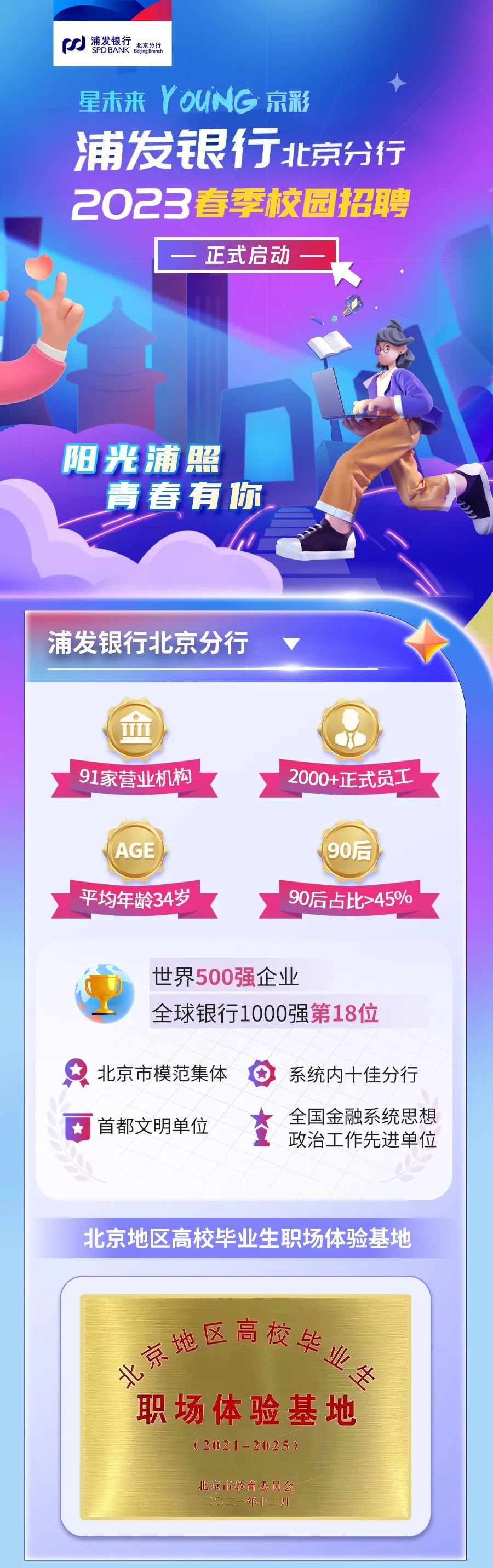 浦汇金英 创造卓越 | 240人!浦发银行北京分行2023春季校园招聘正式启动!