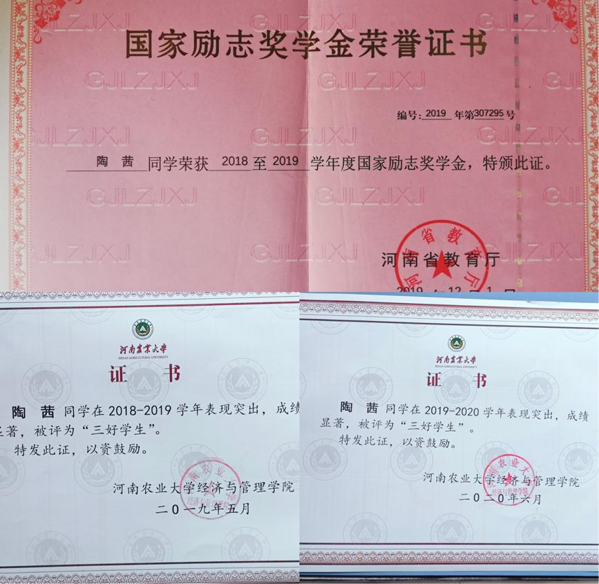 勤勉而顽强地钻研,方能使百尺竿头更进一步。“努力”是她的代名词,为了弥补高考所留下的遗憾,入学伊始便有了进入理想学校攻读研究生的决心。在本科的学习中,她勤奋刻苦,积极钻研,在专业课中取得优异的成绩,两次荣获国家励志奖学金。她明白,这一份份沉甸甸的收获,是拼搏挥汗如雨的日子所换来的。在课余时间,她积极考取证书,目前通过了四六级,计算机二级,初级会计等考试。