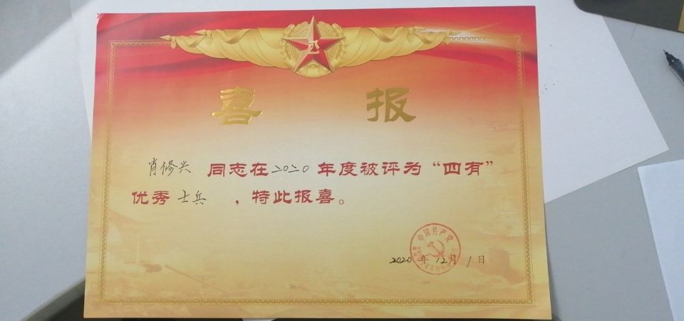 生命里有了当兵的经历,一辈子也不会感到懊悔,即使当时很苦很累,却是这辈子最难忘最值得怀念的日子。正是有了前辈们的抛头颅洒热血,才有了现在的和平安宁,我们要做的便是守护这万家灯火夜夜温馨,守护来之不易的和平。很感谢部队的班长们教了我很多做人做事的道理,很感谢部队让我接触到了不一样的世界,感受到不一样的生活方式,教我掌握了很多技能技术,让我收获了一群亲如兄弟的战友。当兵固然失去一些个人利益,但军旅生活的磨练,个人素质的提高,却又使我们得到最宝贵的东西 ,它能使人终身受益。能在部队为国家奉献自己,是我最大的荣幸。即使回到学校,也要不忘初心,继续前行,发扬部队的优良传统,服务奉献于人民和社会。