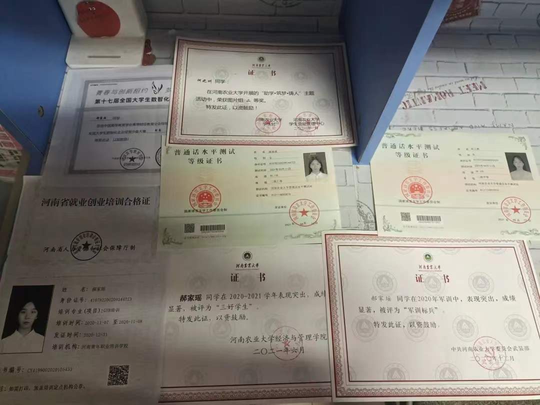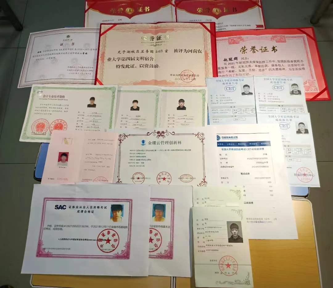 路康田,大一学年积极参加英语社团活动,已考取普通话资格证书,大二学年认真备考英语四、六级并以493分通过四级考试,目前备考英语六级以及初级会计师考试。思想上积极入党,目前已成为入党积极分子;郝家瑶,担任班级团支书、团委干事、院青马班第五期成员,多次组织参与学院的相关活动,带领班级收获多项荣誉。大一期间已考取普通话资格证书,荣获“院三好学生”荣誉,并于大一暑假期间参与第十七届沙盘经营大赛,荣获比赛一等奖,且在2021年学风建设评比中被评为“最美笔记”。大二认真备考英语四级并以532的高分通过四级考试,目前备考英语六级和初级会计师考试。思想上积极入党,目前为预备党员;刘忆南,目前任院新媒体副部,大一期间已考取普通话资格证书,驾驶资格证,大二学年认真备考英语四、六级以及初级会计师考试,班级英语测试中多次取得高分成绩,曾作为彩旗队成员在运动会开幕式上代表学院入场;胡宇艳,目前已考取驾驶资格证,任愿未央公益社团办公室干部,多次代表学院参加歌唱比赛并取得优异成绩,思想上积极入党,目前为入党积极分子。学习上刻苦努力,已报名四级考试和初级会计师考试,正在认真备考;刘晓玲,大一已考取普通话资格证书,驾驶资格证,曾作为彩旗队成员在运动会开幕式上代表学院入场,已报名英语四级考试和初级会计师考试,目前正在认真备考;何之洲,目前任职班级学宣委员,已考取普通话资格证书,在红歌会中带领班级荣获一等奖。宿舍五人在大一暑假参加“三下乡”社会实践活动,认真撰写通讯,积极参与实践。