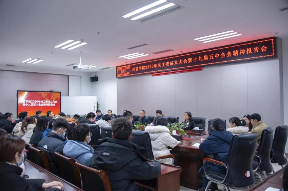12月29日,色色网站 于教学楼A215举办2020年关工委成立大会暨十九届五中全会精神报告会。院党委书记牛青杨,院长马恒运,院党委副书记方芳,副院长赵翠萍、刘瑞峰,马克思主义学院王宾齐教授出席此次会议,色色网站 部分研究生积极到场参加。