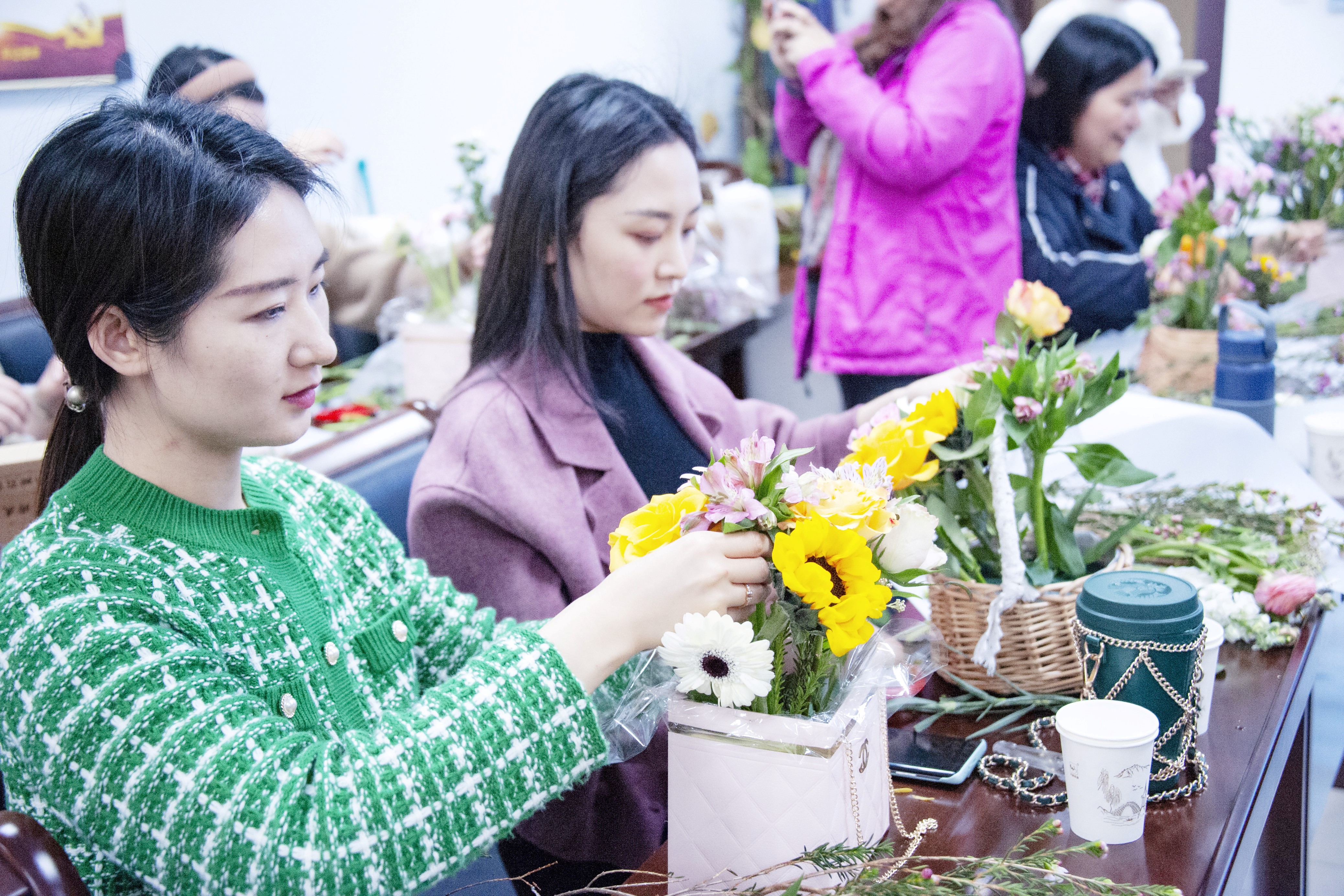 在教学楼A215举办“幸福如花,‘经’彩绽放”女神节花艺活动。学院邀请本院17级自主创业学生任艳娜主讲,色色网站