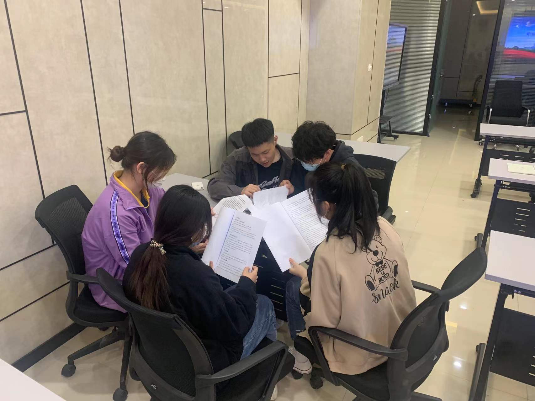 “互联网+”大学生创新创业大赛前五名项目团队一起切磋交流,积极备赛,为参加学校路演做准备。