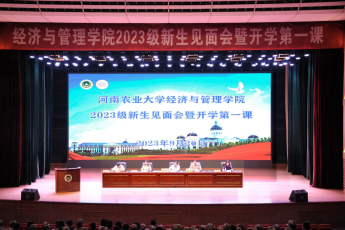 新生见面会暨开学第一课在庄严的国歌声中拉开序幕。首先由院长马恒运致欢迎辞,他代表学院全体师生对新同学表示热烈的欢迎和诚挚的祝福,同时向培养同学们的亲友、老师以及关怀大家的社会各界表示衷心的感谢。随后,马院长回顾了学院的发展历程,同时他简要地介绍了学院各专业的情况,以及学科之间的交叉性以及融合性,强调学习要学会主动发现问题解决问题。最后,马院长对新生提出几点殷切希望:一是希望新生尽快转变身份,适应大学生活节奏,自强不息,奋发努力;二是希望积极融入经管学院,爱上经管学院这个同舟共济的大家庭;三是希望新生勤勉刻苦,将奋斗的力量融入百年农大的基业里,努力成为担当民族复兴的新时代新青年!