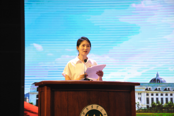 五一劳动奖章获得者时心怡老师作为教师代表发言,她结合自身经历和工作感悟向新生们分享学习生活经验:一是勇毅前行,接续奋斗,不断丰富精神世界,汲取智慧力量;二是锤炼心态,培养品格,在实践中掌握真本领;三是不忘初心,逐梦未来,怀揣民族复兴的理想信念,用责任与智慧投身国家建设,不忘初心,追寻梦想!