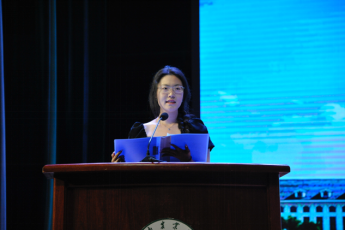新生代表经济学4班霍子瑜上台发言,首先她向所有关心帮助过新生的领导老师、学长学姐表示衷心的感谢。随后,她表达了对大学生活的期待和对未来的无限憧憬,倡导大家提高慎思明辨的能力,坚定发愤图强的信念,担当博学笃志的责任!