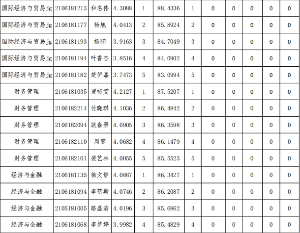 拟推荐28名同学免试攻读硕士学位研究生,其中经济学专业5名,财务管理专业5名,工商管理专业4名,经济与金融专业4名,农林经济管理专业5名,国际经济与贸易专业5名,现予以公示,名单如下: