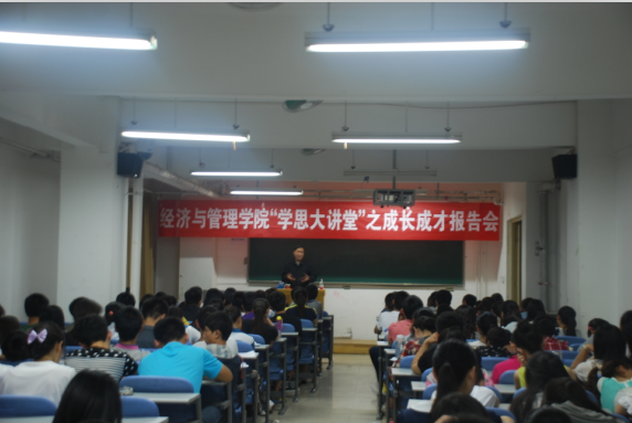 首先,杨明亮教授以“大学生如何上好大学”为切入点对大学生当前生活状态进行评述,他以通俗易懂、幽默风趣的话语对在座学生进行思想引领。其次,他又以自己亲身经历为例,向大家强调加强自身素质教育的必要性和重要性,砥砺同学们要抓住学习的机会,把握学习的时间,用有效的资源全面提高自身素质。最后,他用事例为载体论述“大学生如何提高核心竞争力”,以此让同学们认识到核心竞争力对个人发展的重要性,鼓励同学们培养核心竞争意识。现场气氛活跃,台上台下互动良好,同学们纷纷表示受益匪浅。