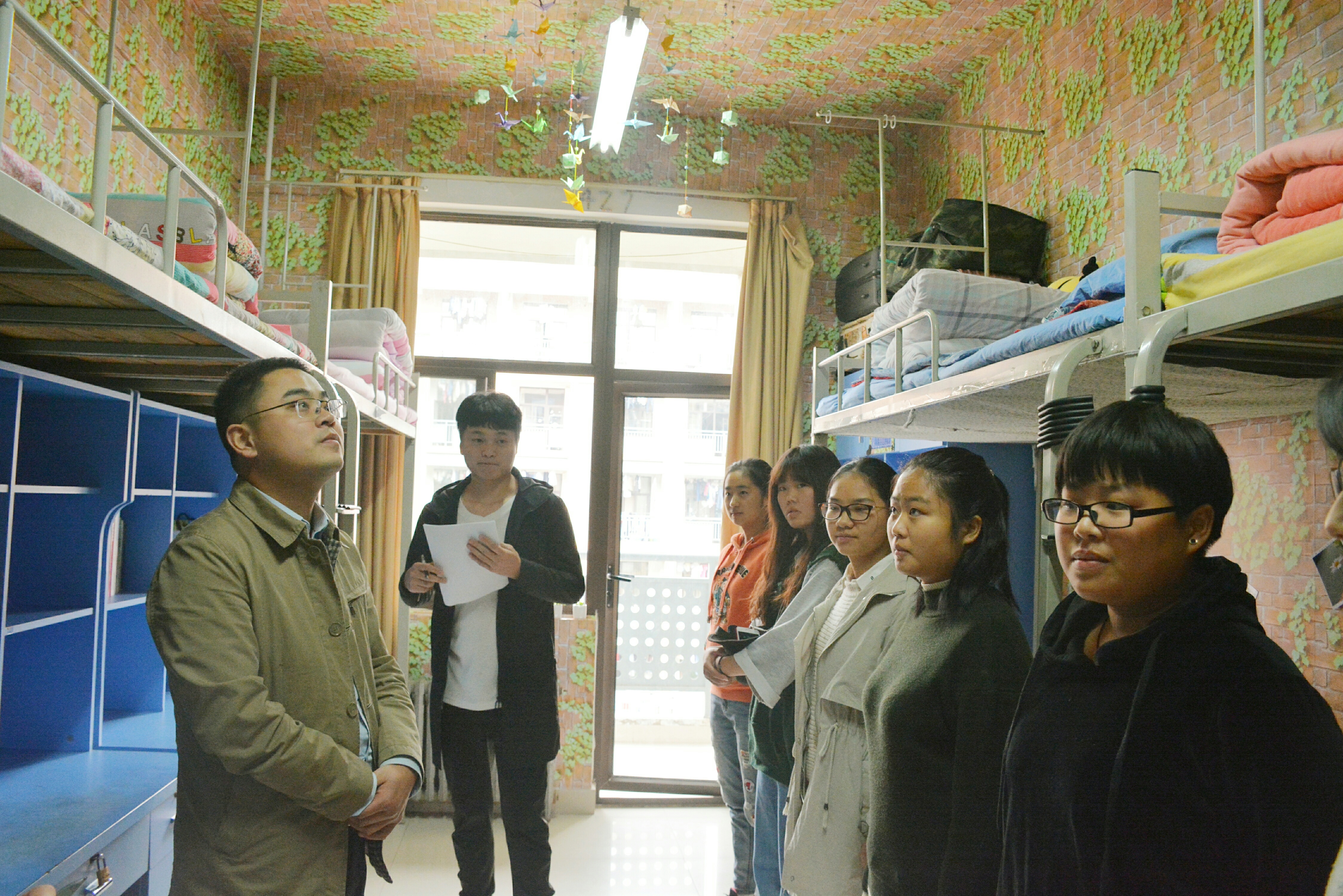 于10月31日成功举办宿舍装扮大赛,本次宿舍装扮大赛针对学院17级新生展开。院团委副书记杨鑫深入学生宿舍参观,感受宿舍文化。