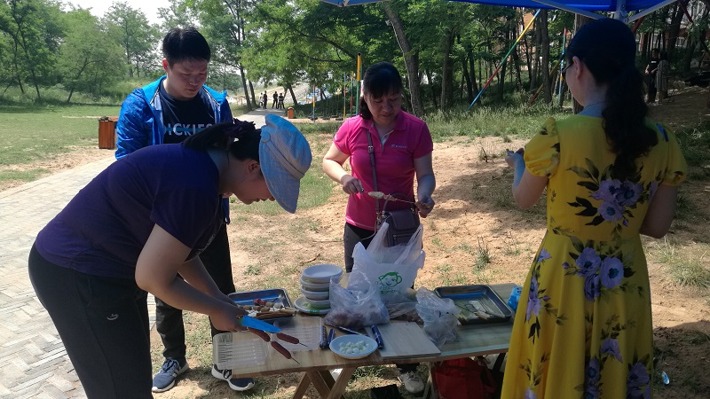 在学院党政的大力支持下,院分工会对活动做了精心安排,提前准备了烧烤食材、调料、用品等。烧烤活动开始后,大家在树荫下三五成群围坐炉旁,穿食材、生炭火、放调料、做烧烤,忙的不亦乐乎,整个烧烤区顿时香气四溢。吃着经过自己动手劳动的美味食物,大家畅谈交流、欢声笑语。