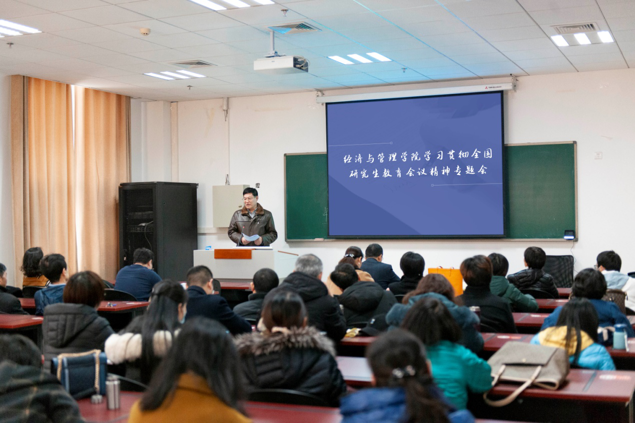马恒运领学了全国研究生教育会议上习近平总书记的重要指示、李克强总理的批示、孙春兰副总理的讲话精神和陈宝生部长的工作部署,以及12月21日校长张改平就贯彻落实全国研究生教育会议精神提出的“三点要求”。他强调,我们要坚持立德树人为根本任务,以全国研究生教育会议精神为指导,以全国第五轮学科评估为契机,总结学院学科发展优势,查找学科发展不足,科学分析原因。他提出要从引进高质量人才、提升高素质导师队伍、丰富高要求课程体系、提高高水平研究生论文质量等环节为工作重点,全面提升学科整体水平。