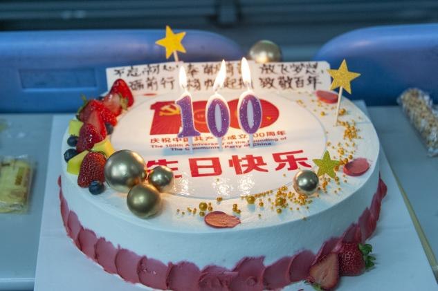 毕业生党员为我党送上了自己最诚挚的祝福。毕业生党员们在蛋糕上插上了代表建党百年的蜡烛,并为党献唱,表达了对我党百年华诞的美好祝愿。