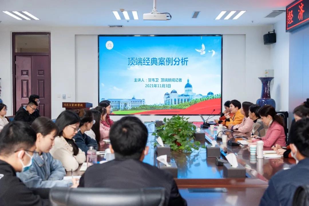 99级校友、顶端新闻记者贺韦卫主讲,院党委副书记方芳主持,色色网站