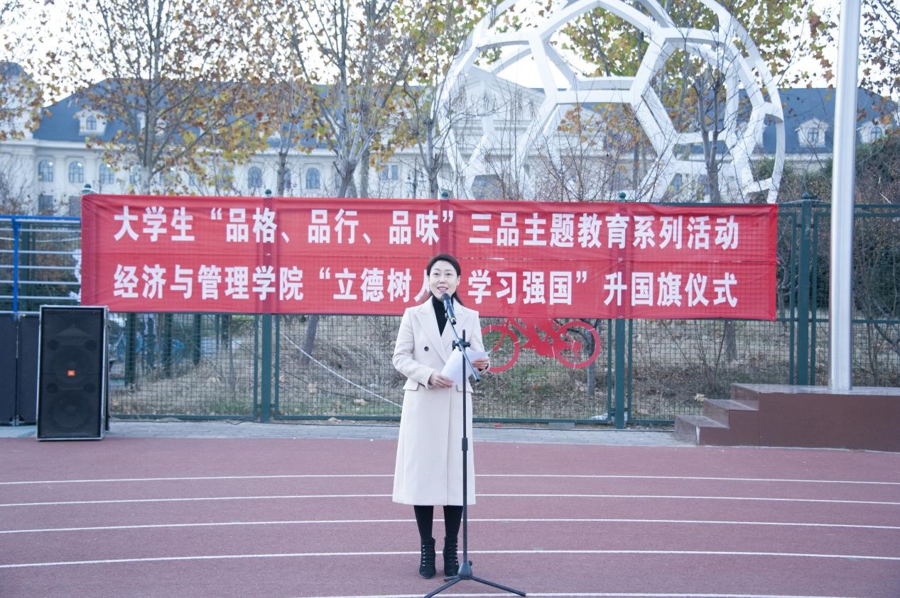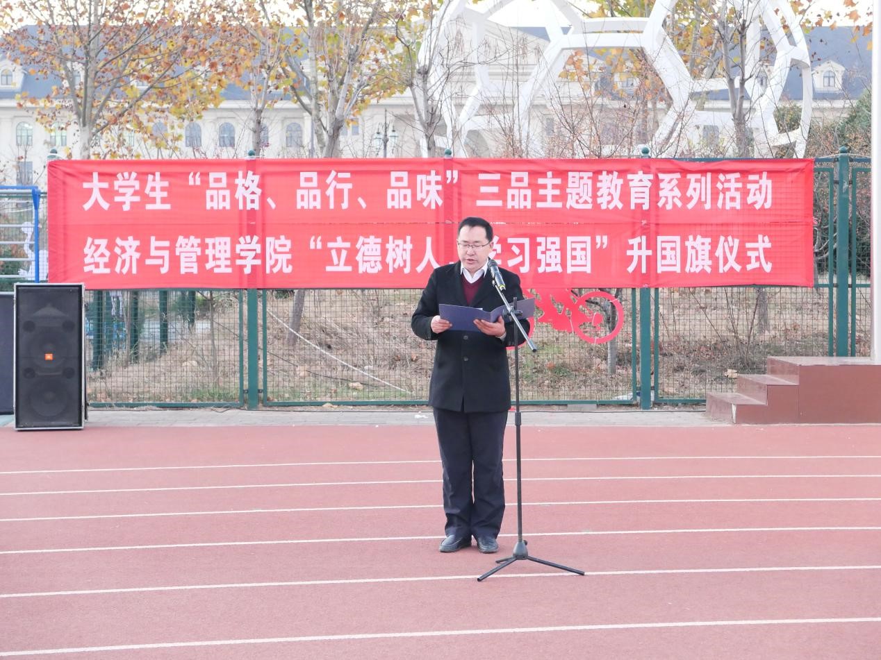 升旗完毕后,学院党委书记牛青杨发表讲话,回顾了我党百年奋斗史,并对色色网站