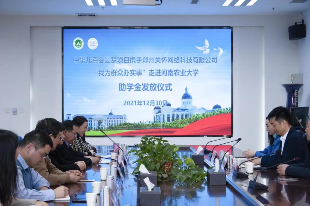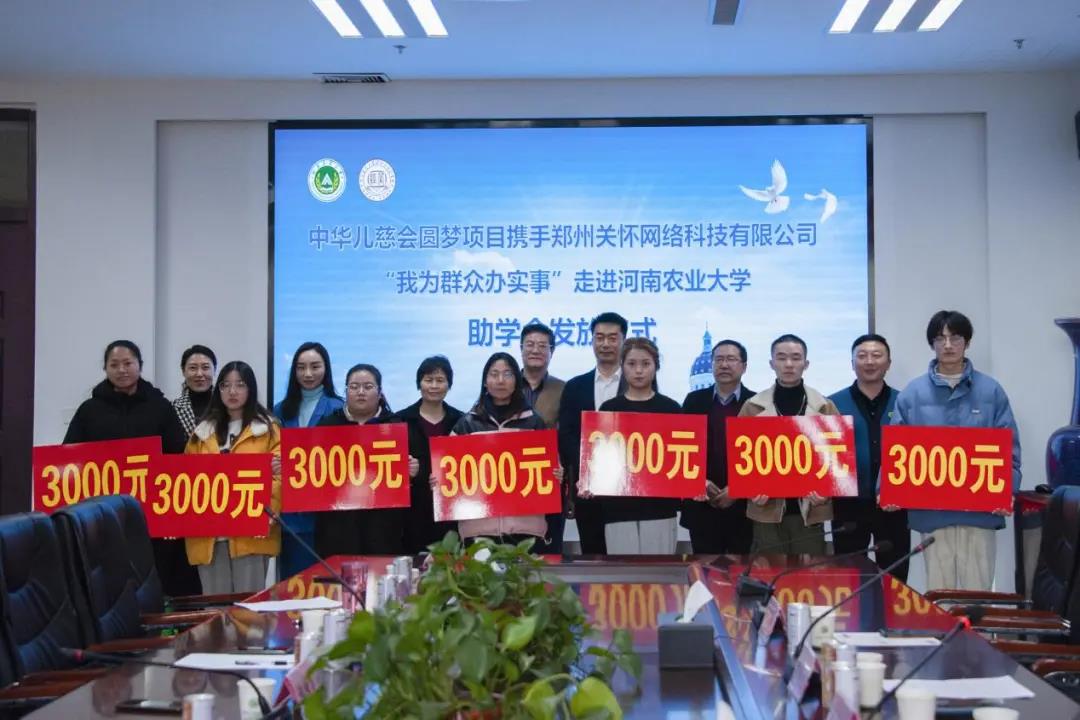 助学金发放仪式在教学楼A215顺利举行。郑州关怀网络科技有限公司董事长尹朝林、联合创始人刘中杰、董事长助理王曼出席。色色网站