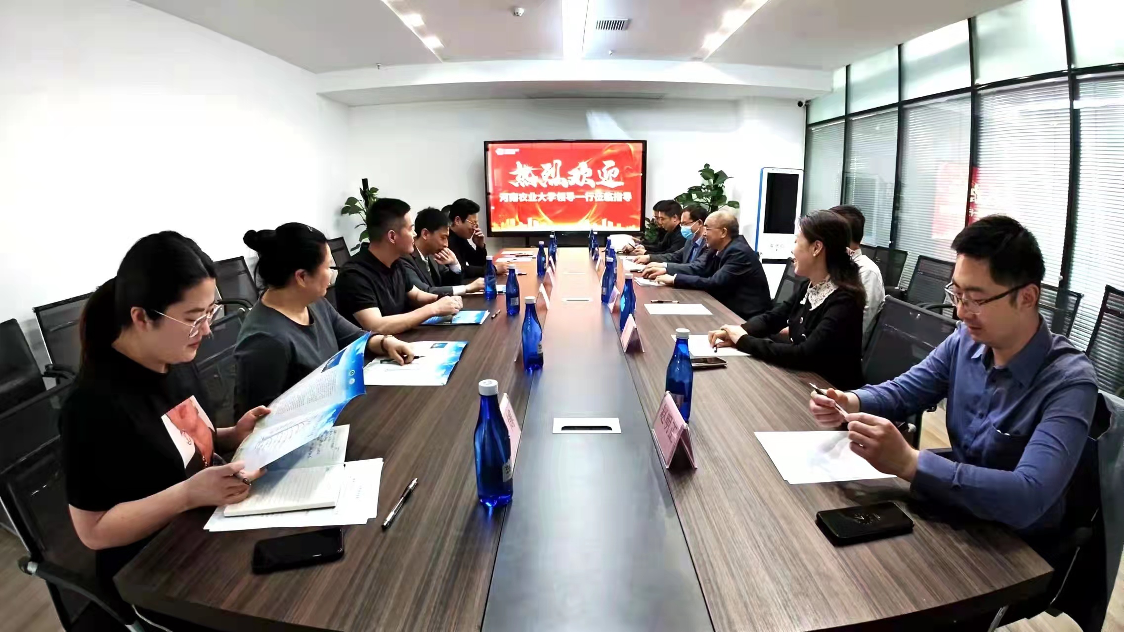张成军介绍了河南科技园区整体情况,并结合园区的定位发展、人才需求,希望依托双方优势资源,从人才培养、实习实训、校企合作等方面开展进一步的合作。邓启皇具体介绍了京硕信息科技的具体情况,同时还就公司的经营状况和战略规划进行了详细介绍,重点介绍了公司在自助打印、智能控制系统等方面研发和项目落地的相关情况。