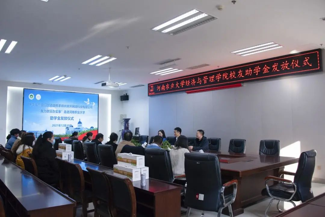助学金发放仪式在教学楼A215顺利举行。郑州关怀网络科技有限公司董事长尹朝林、联合创始人刘中杰、董事长助理王曼出席。色色网站