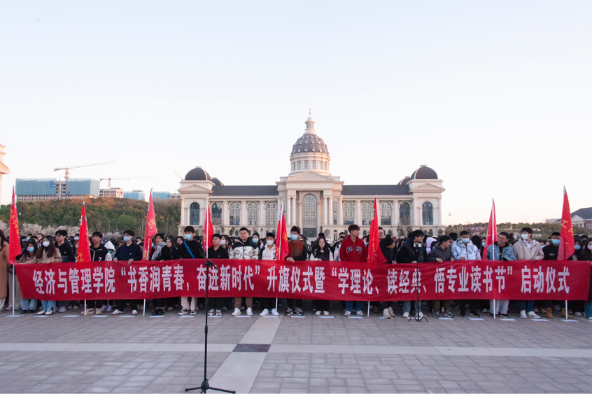 举行“书香润青春,奋进新时代”升旗仪式暨“学理论、读经典、悟专业读书节”启动仪式