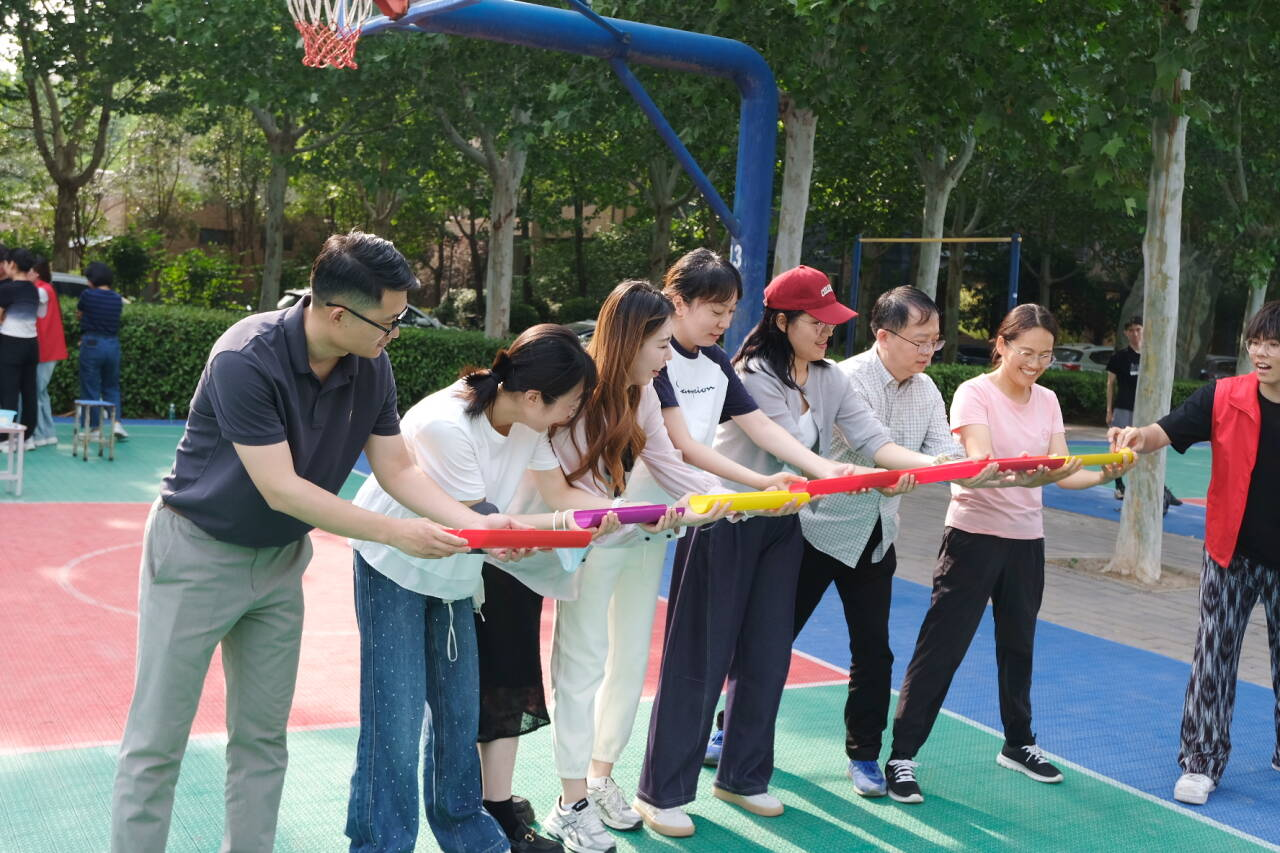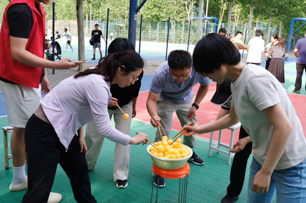 本次运动会包含“筷子夹球”“定点投篮”“千里传珠”“合力建塔”“同心击鼓”“一分钟颠球”六项项目,不仅考验着教职工的身体素质,更考验着团队的协作能力和沟通能力。比赛开始后,各队成员积极投入,同呼吸,共命运,不断挑战自我。场上,教职工们互相鼓励、互相帮助,发扬了团结协作的精神风貌。场外,观战的老师们为他们加油喝彩,每个人的脸上都洋溢着快乐与幸福。整个运动会的气氛热烈而又紧张,扣人心弦而又不失活泼,每个项目都充满了挑战与乐趣,教职工们赛出了个人风采,也赛出了学院集体的凝聚力。
