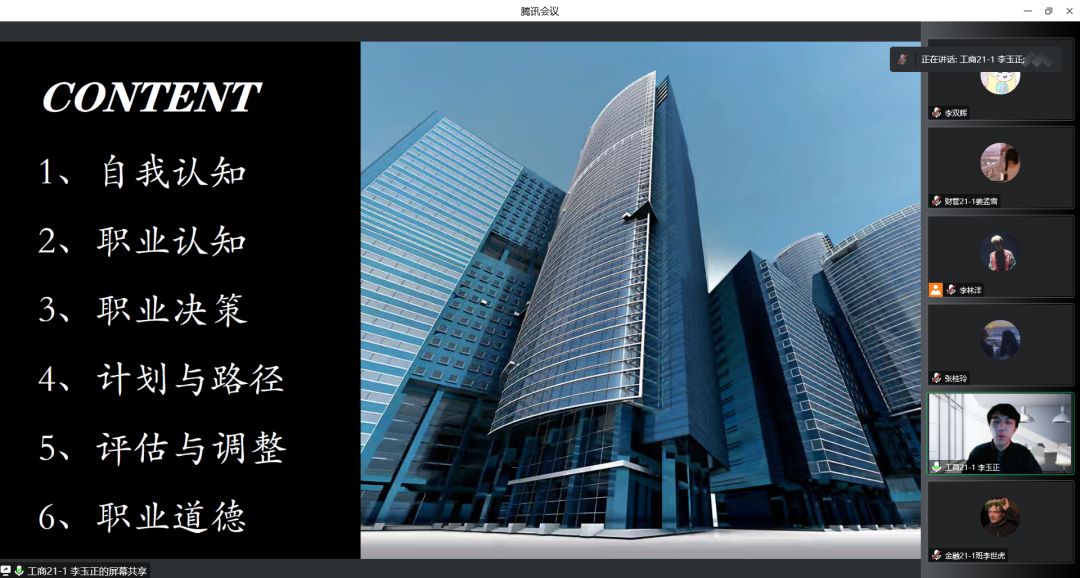 比赛分为5分钟现场展示和3分钟现场答辩两项。赛场上,选手们通过精心制作的PPT和清晰流畅的语言,从自我认知、职业认知、职业决策、计划与路径、评估与调整、职业道德多方面入手,系统阐述自己的大学成长计划和未来职场规划。在每位选手汇报后,评委针对选手的职业规划和PPT个人展示提出问题,引导同学们更加全面地思考如何做好职业规划,并给出相应的指导意见和期望。