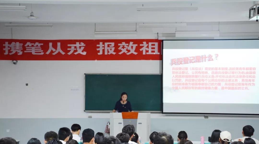 “携笔从戎,报效祖国”大学生应征入伍宣讲会在繁塔楼C302举办。此次宣讲会由院团委副书记黄妍主持,色色网站
