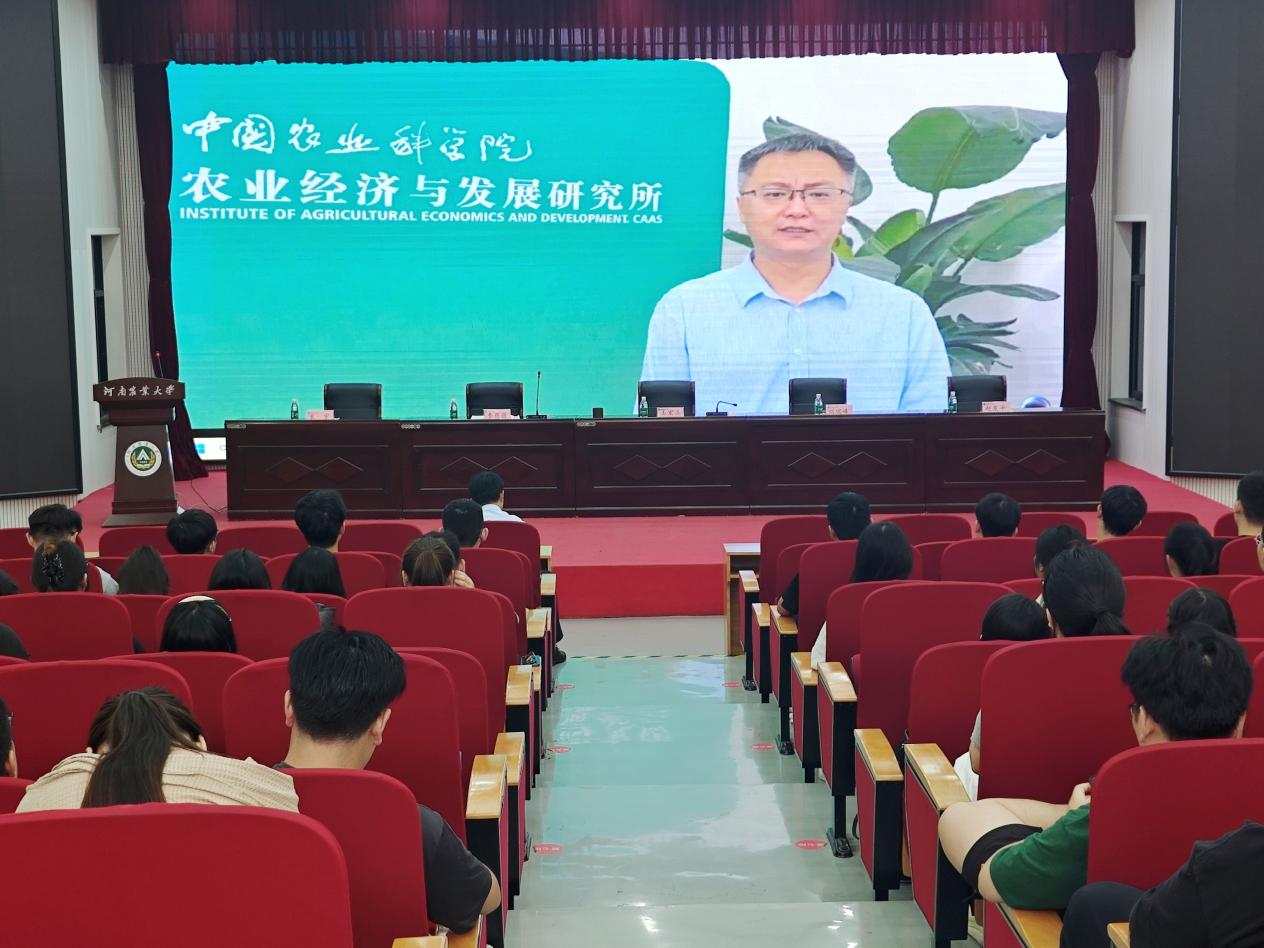 随后,中国农科院农业经济与发展研究所所长胡向东通过视频方式远程致辞,围绕农业经济与管理领域的发展机遇与挑战并结合自身研究经历,表达了对学院培养高质量人才的期许。
