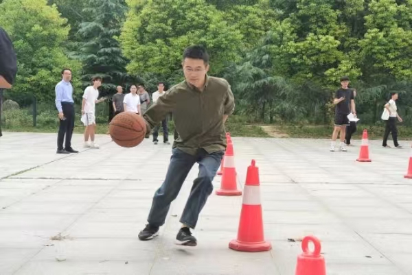 本次趣味运动会包含“筷子夹球”“趣味运球”“千里传珠”“过纸桥”四个项目,老师们身着休闲运动装,精神焕发,时刻准备大展身手。比赛过程中,他们风采尽显,或专注凝神,或奋力拼搏,欢声笑语不断。每个项目都充满挑战与乐趣,“筷子夹球”项目考验专注与配合,“千里传珠”与“过纸桥”则更强调团队协作与策略,让老师们深刻体会到运动魅力和团队力量。