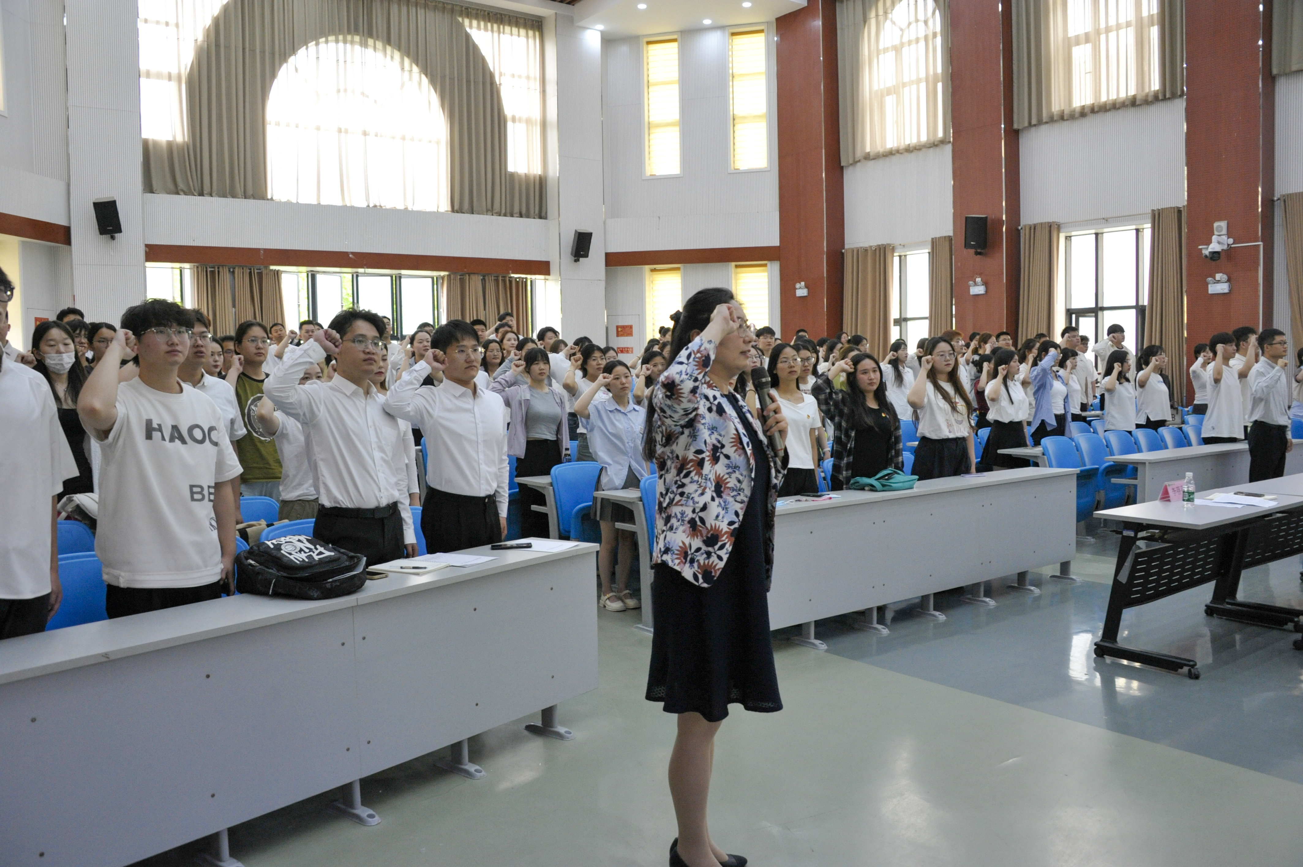 在大教室四召开毕业生党员大会。校关工委执行副主任兼秘书长李世国,院党委副书记李蓓蓓,院团委副书记余月圆及2024届毕业生党员到场参加,本次大会由余月圆主持。