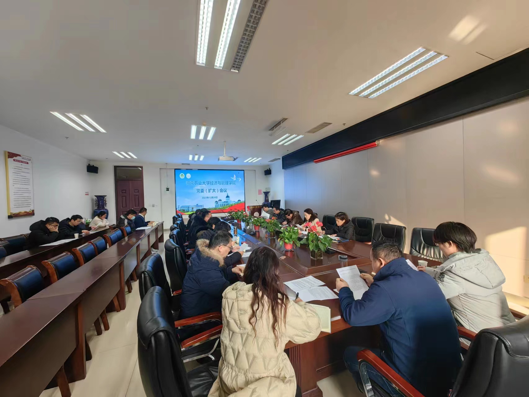 于繁塔楼A215会议室召开师德师风建设工作会议。会议由院党委书记王宏立主持,学院党政班子成员及教职工代表参加会议。