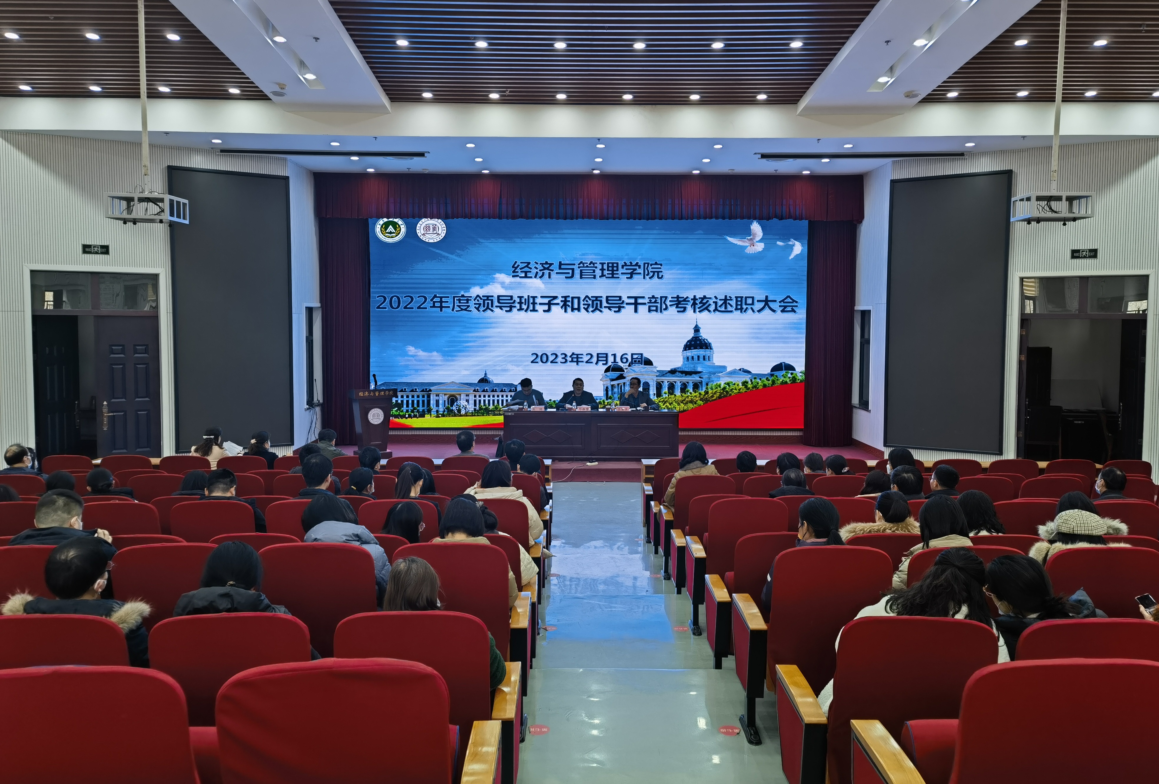 在龙子湖校区繁塔楼AB之间二层大教室1召开2022年度领导班子和领导干部考核工作会议。校党委宣传部部长邓振营、党委统战部民主党派工作科科长焦帅等考核组成员出席会议,学院领导班子成员、中层干部、全体教职工参加会议。会议由院党委书记王宏立主持。