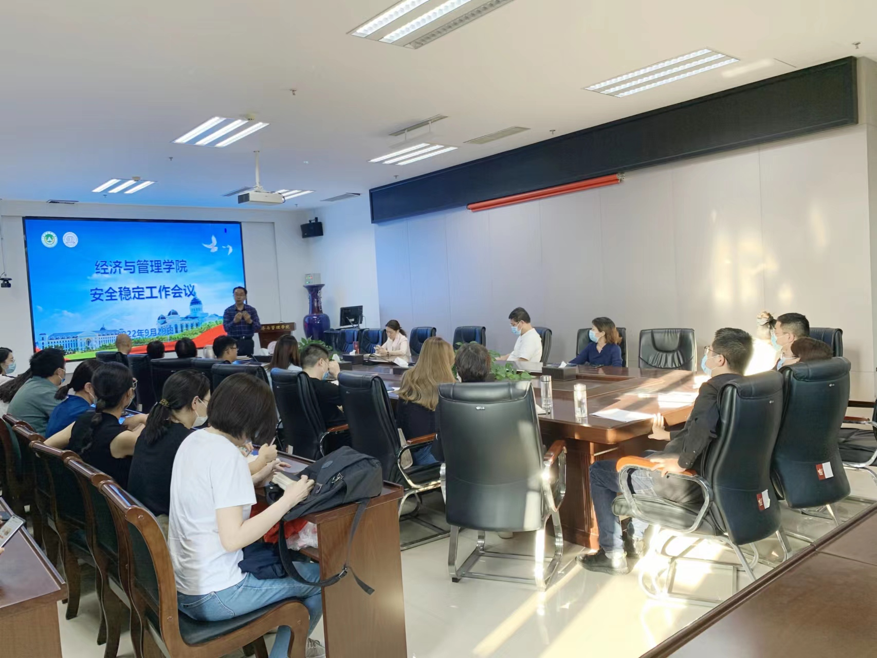 在教学楼A215会议室召开安全稳定专题工作会。院班子成员、系主任、班主任及辅导员参加会议。