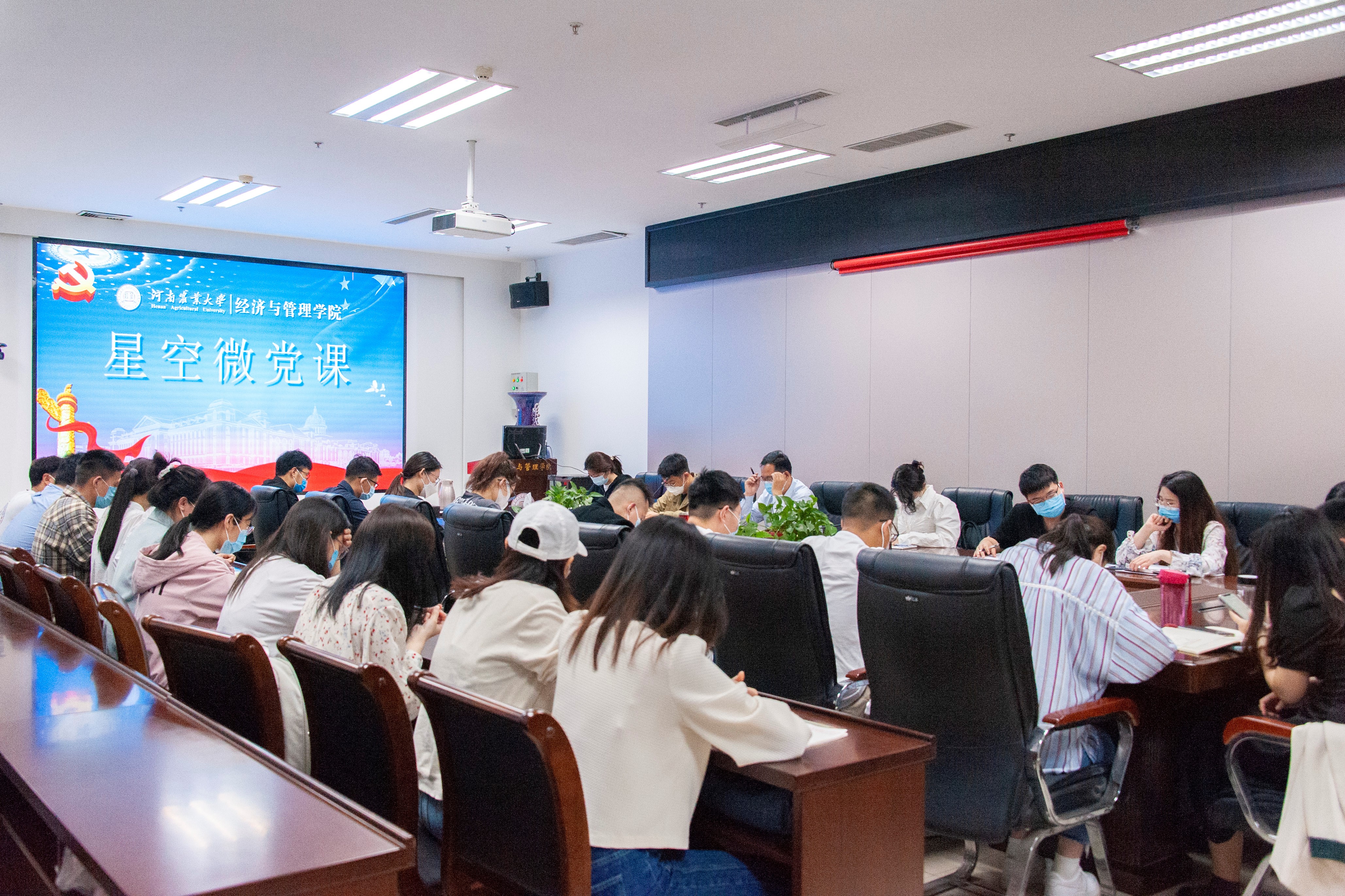于教学楼A215举办新一期星空微党课,院党委书记牛青杨与研究生党员代表面对面,共同学习习近平总书记在中国人民大学考察调研时的重要讲话精神,并与同学们座谈交流学习心得体会。院团委老师余月圆主持本期星空微党课,近30名研究生党员代表参加。