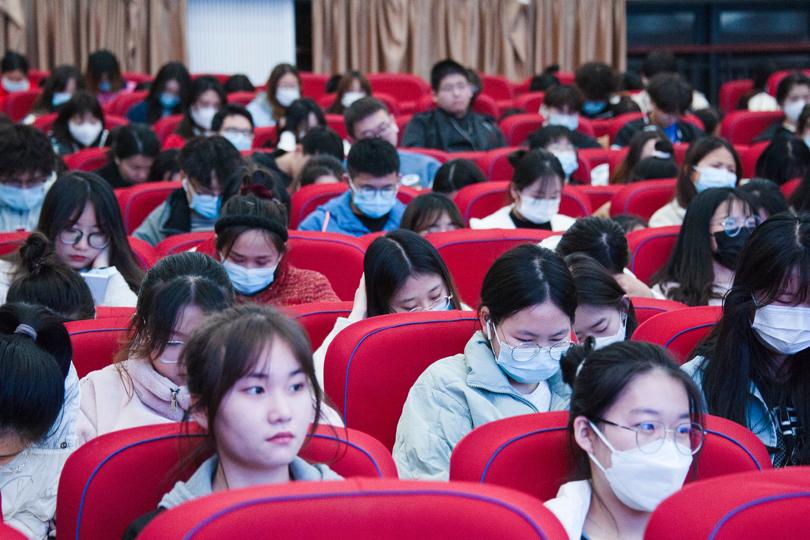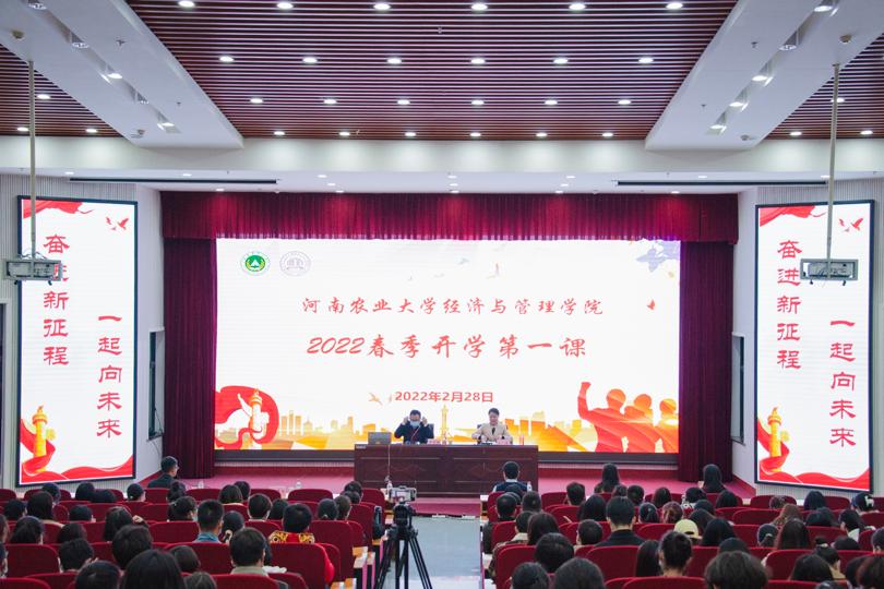 在大教室一举办“奋进新征程,一起向未来”2022春季开学第一课活动。院党委书记牛青杨、党委副书记方芳、团委书记杨鑫、团委老师余月圆、张桂玲、戚亚薇出席本次会议,部分学生积极到场参加。会议由方芳主持。