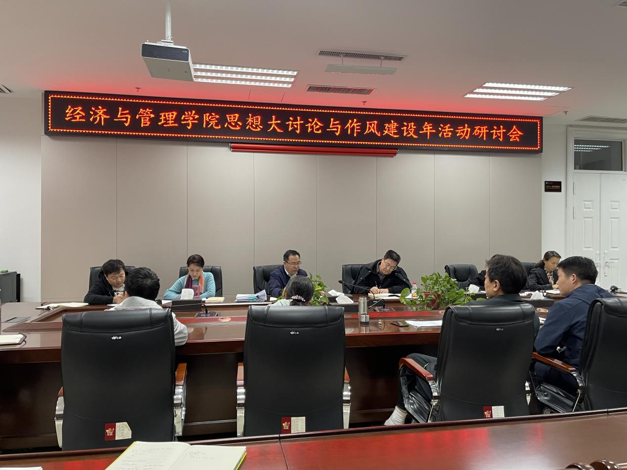 在教学楼A215会议室召开教育思想观念大讨论与作风建设年活动研讨交流会,学院领导班子成员和各系室主任参加会议。会议由院长马恒运主持。