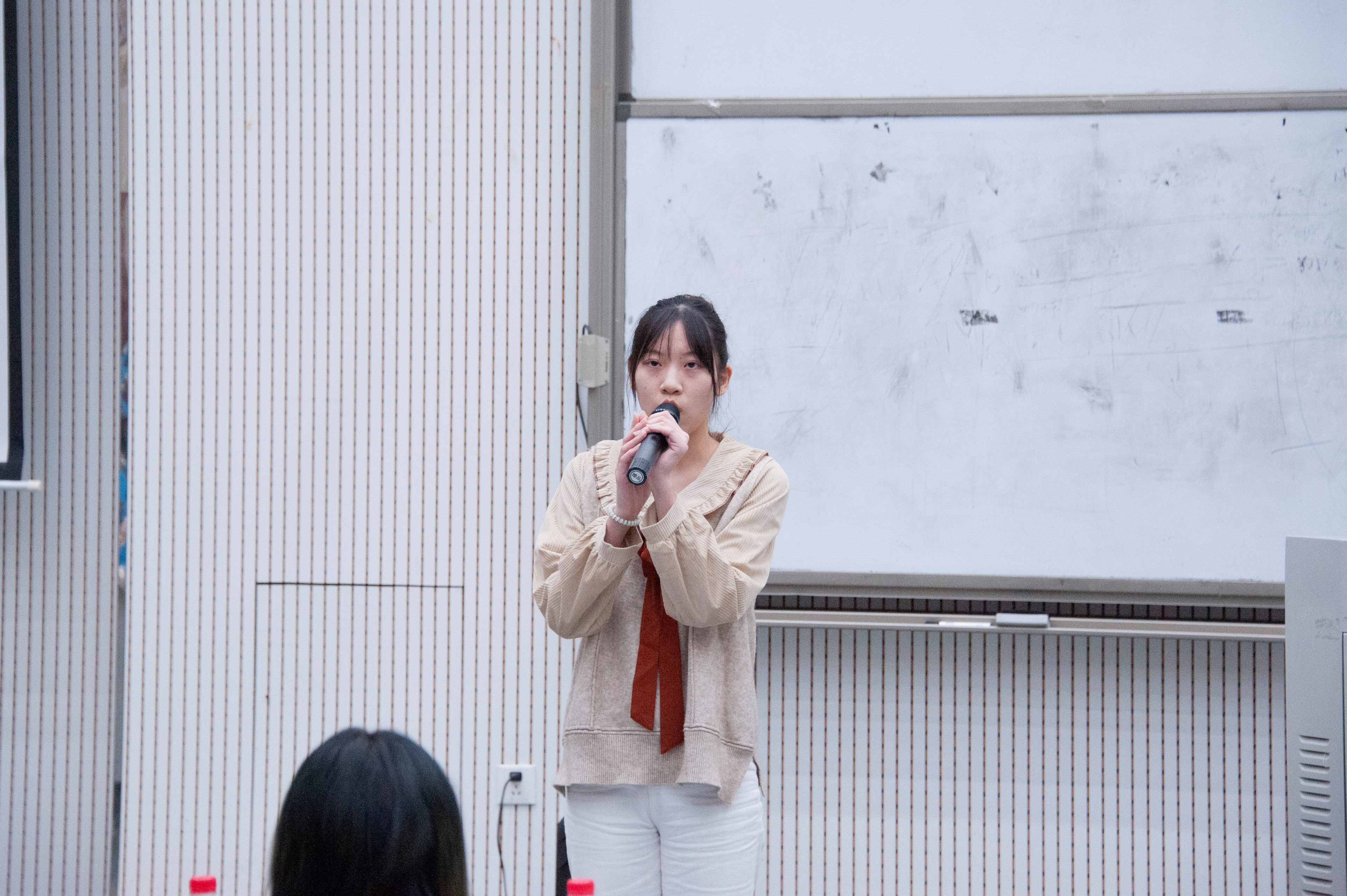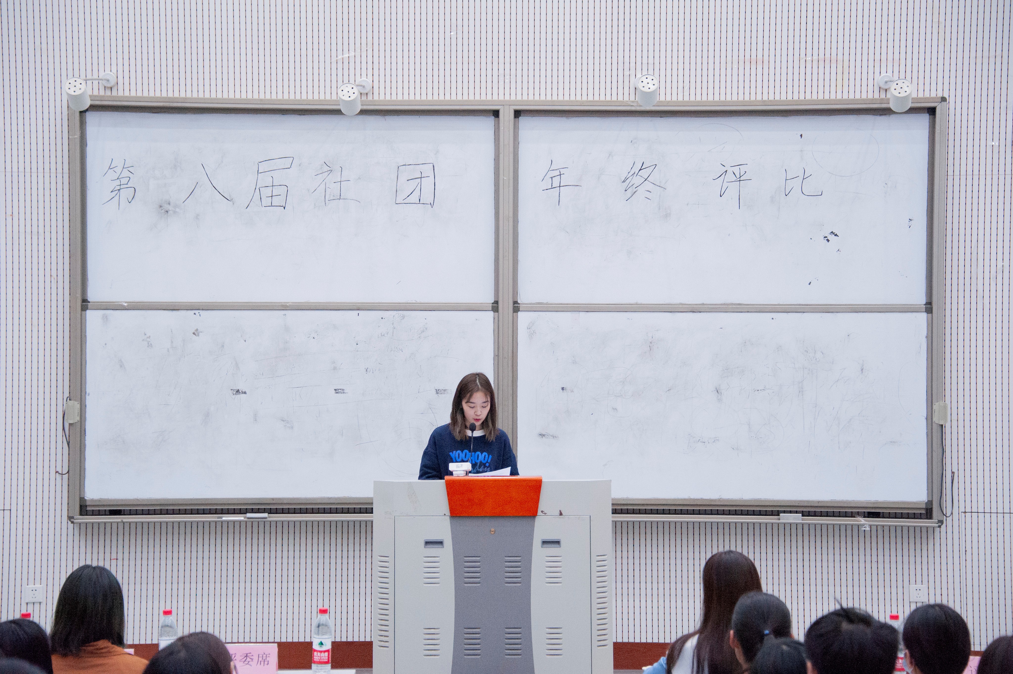 活动开始前,评委老师、各社团成员和新生依次入座。在主持人宣读了评比规则后,此次社团评比活动正式拉开了帷幕。活动伊始,社团部部长韩紫绿首先简单介绍了近来社团的发展状况,围绕工作章程、工作总结以及社会影响力等三个方面肯定了过去一年里各个社团的工作成果,同时也向大家陈述了未来一年的工作计划。