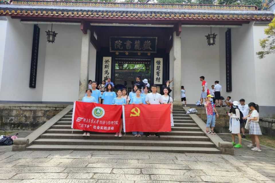 经过湖南大学,队员们一路来到了国古代著名的四大书院之一的岳麓书院,它也是中国现保存最完好的一座古代书院,它历经千年,弦歌不绝,故世称"千年学府"。团队成员们怀着崇高的敬意站在岳麓书院门前,观察到大门左右两墙上有一副当代学者的对联,上面写着“治无古今,育才是急,莫漫观四海潮流,千秋讲院;学有因革,通边为雄,试忖度朱张意气,毛蔡风神”的字样,学习宋代的朱熹、张拭,近代的毛泽东、蔡和森,使中华文脉永续传承,红色基因代代相传。