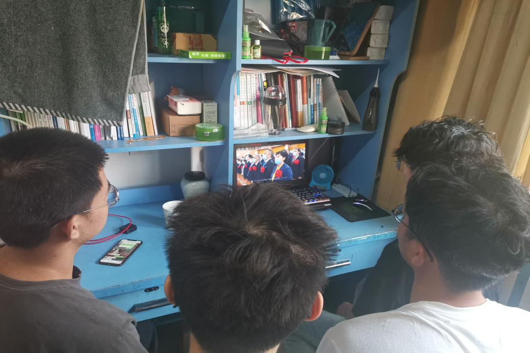 学生以宿舍为单位观看大会内容