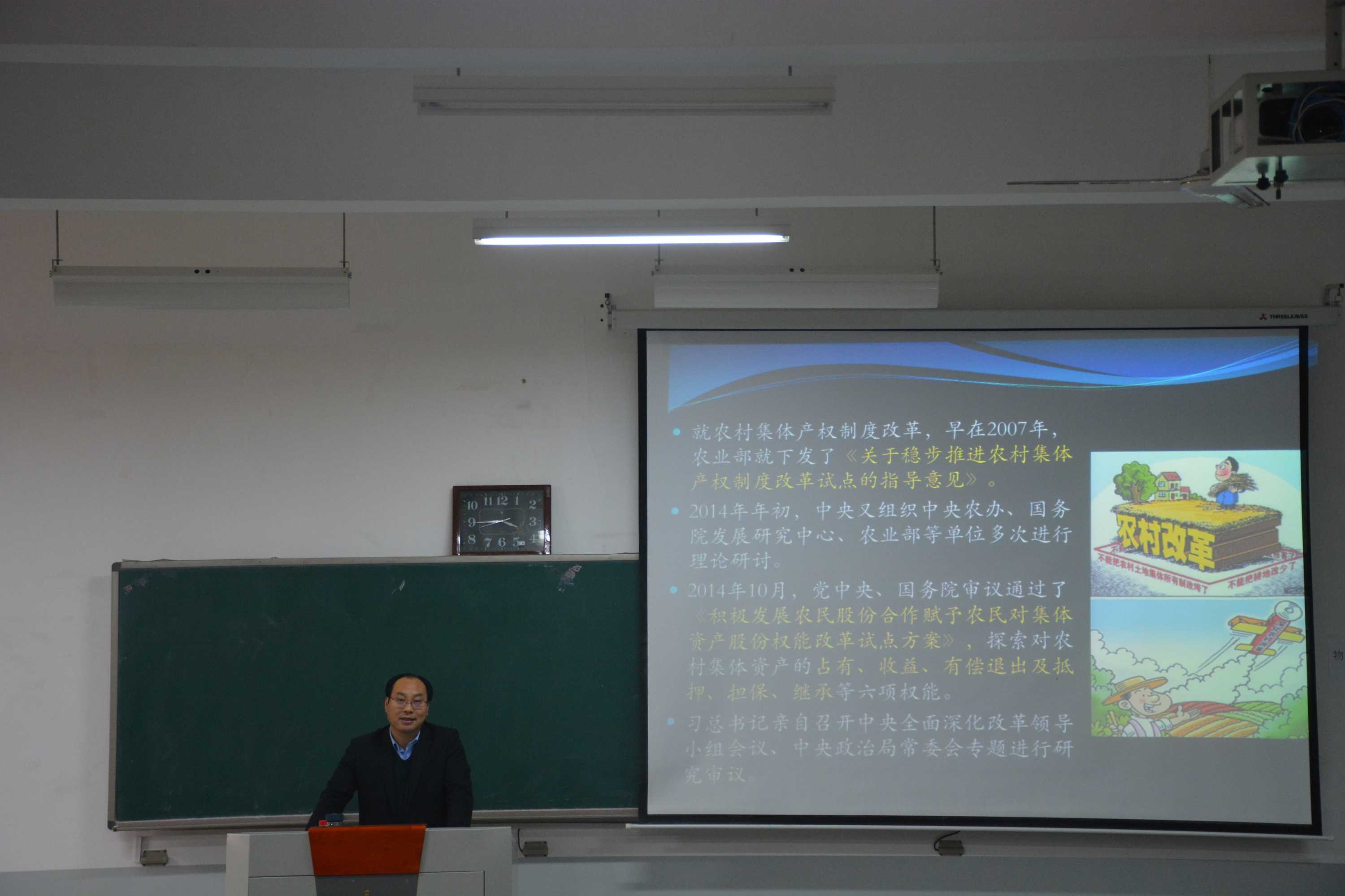 于繁塔楼C202举办“推进农村集体产权制度,创新发展新型农村集体经济”专题讲座。此次讲座由河南省农村合作经济经营管理站站长、河南省现代农业产业经济评价体系首席专家张道明主讲。色色网站