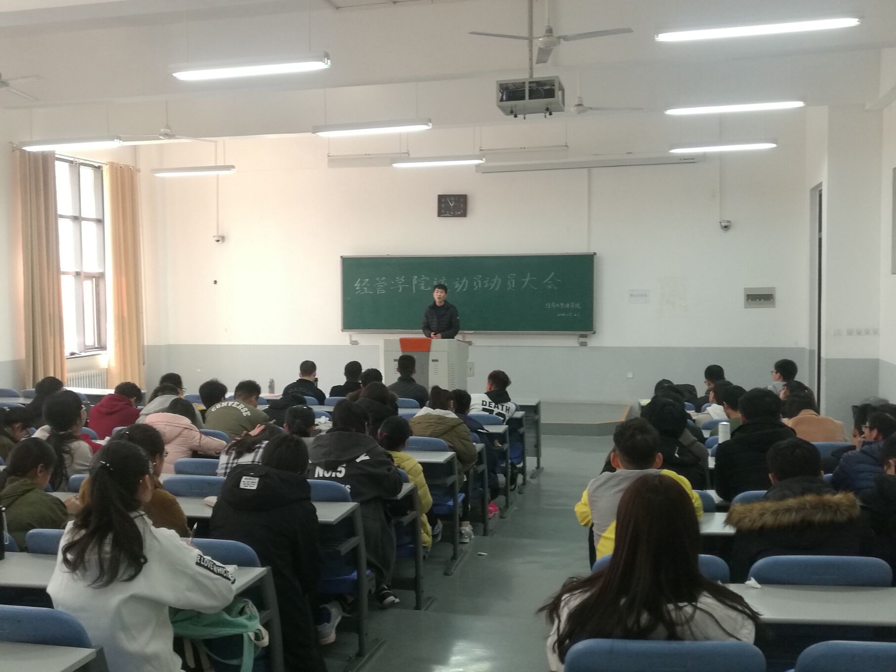 关于迎战第50届校运动会运动员动员大会在繁塔楼C102举行,该院学生会体育部成员与运动员积极参加,院团委副书记杨鑫到场出席。