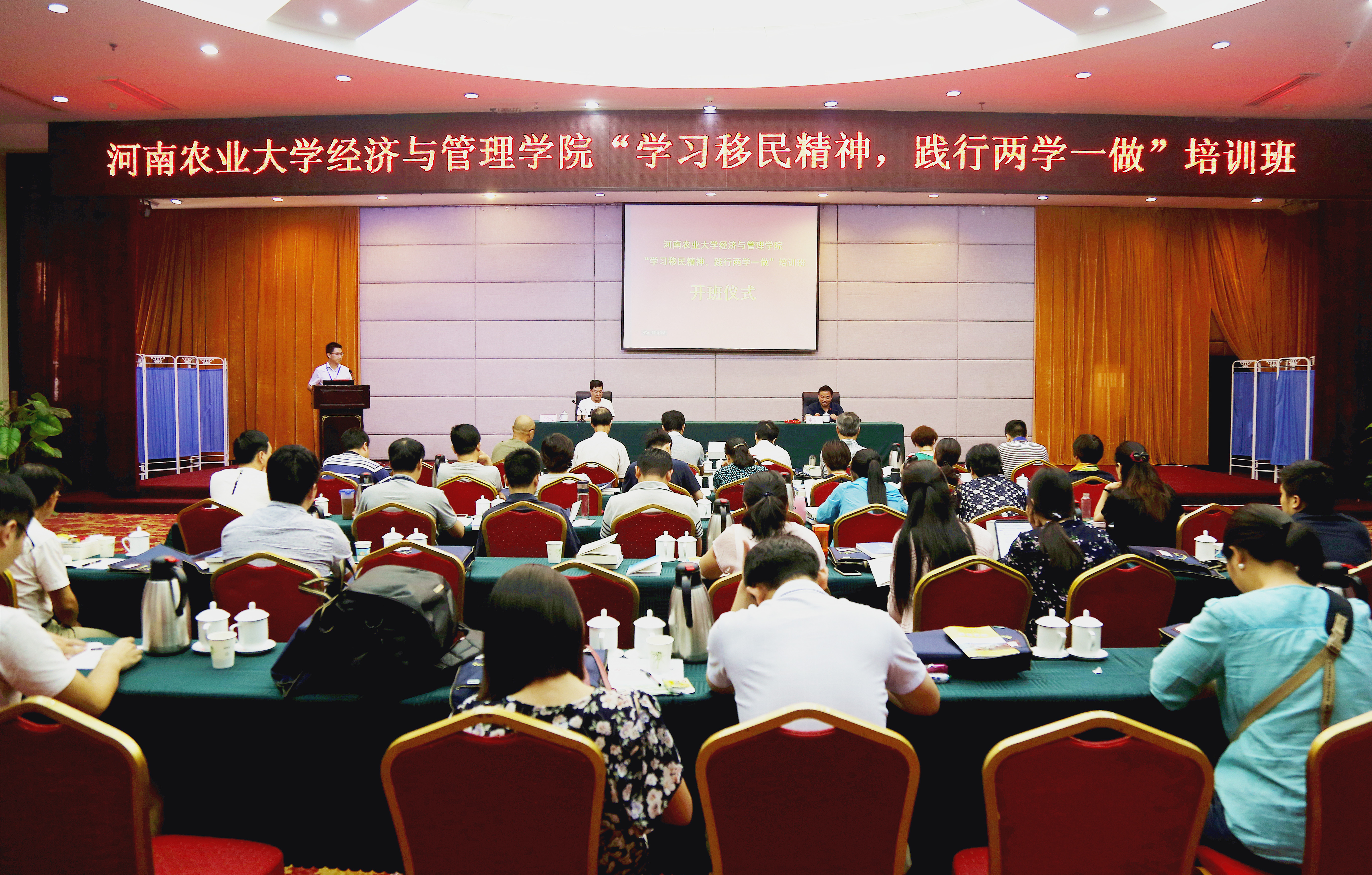 7月11—14日,经管学院在南阳南水北调干部学院举办“学习移民精神,践行两学一做”培训班,校党委书记程传兴、学院全体教工党员和部分党外教工代表参加了培训班。