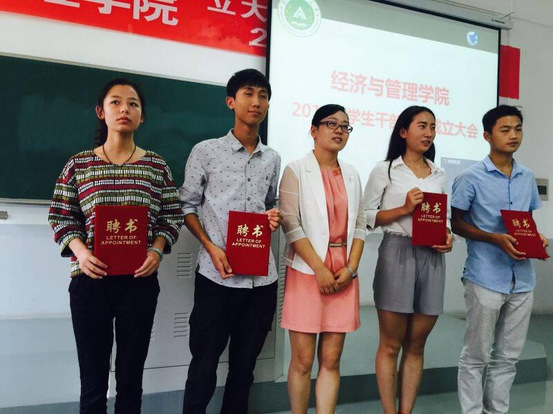 2015届学生干部换届成立大会在繁塔楼D-106举行。院党委副书记李建群、院团委全体老师及学院主要学生干部到场参加,会议由院党委组织员张倩主持。